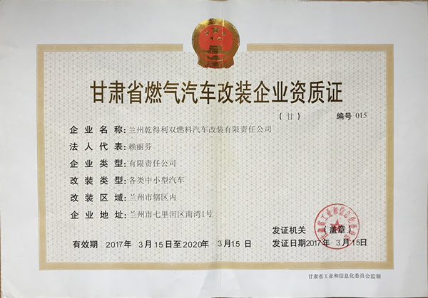 蘭州乾得利雙燃料汽車改裝有限責(zé)任公司 電話:0931-2344726 13919176564